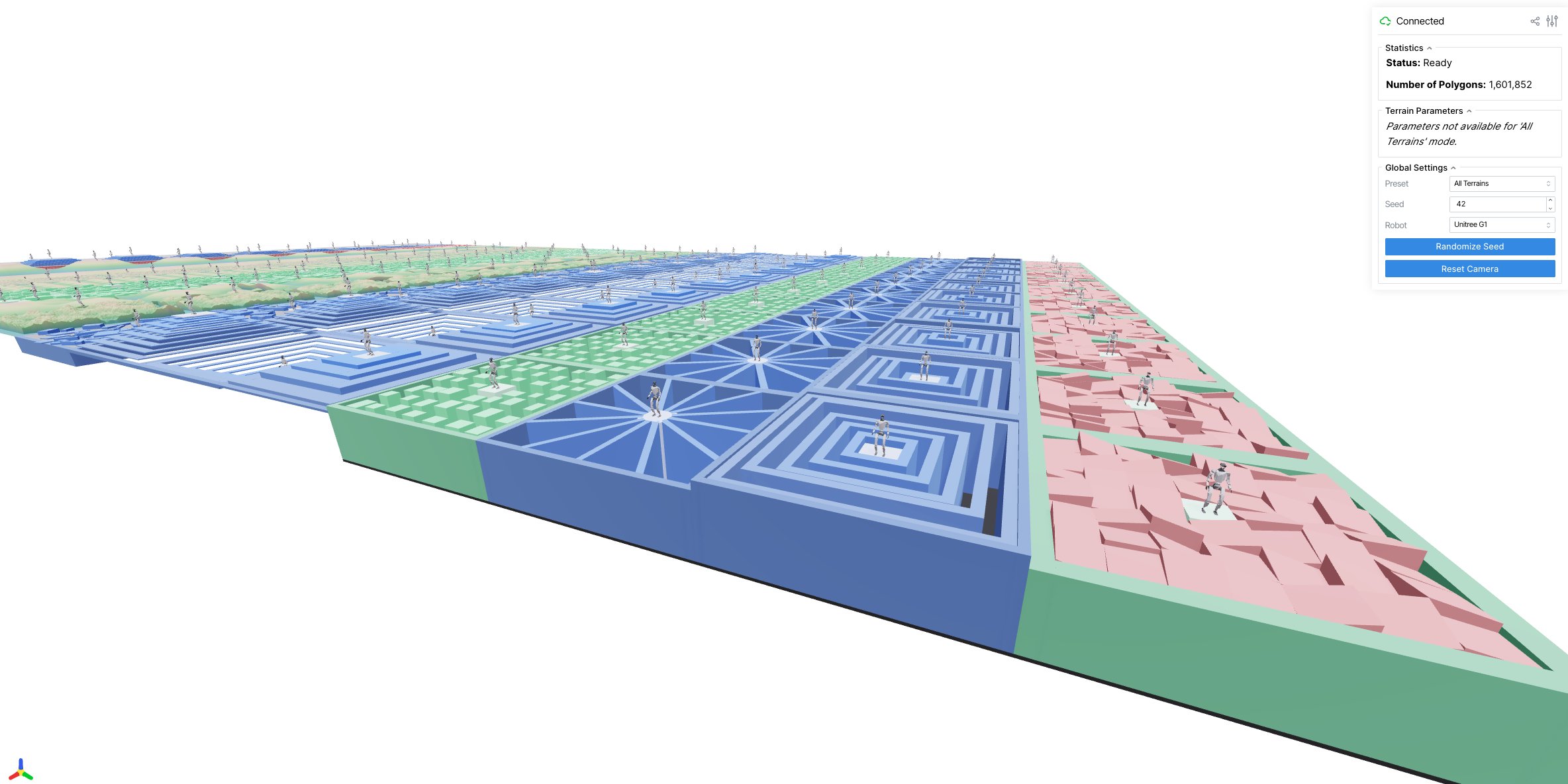 HfDiscreteObstaclesTerrainCfg,HfPerlinNoiseTerrainCfg,BoxSteppingStonesTerrainCfg,BoxNarrowBeamsTerrainCfg,BoxRandomStairsTerrainCfg, and more. Added flat patch sampling for heightfield terrains.Added site group visualization to the Viser viewer (Geoms and Sites tabs unified into a single Groups tab).